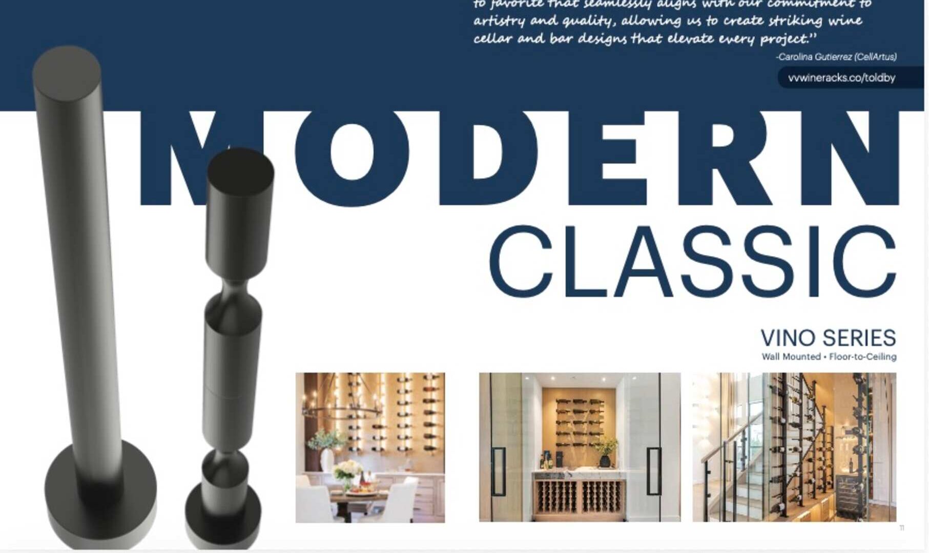 Additionally, our founder Carolina Gutierrez was personally quoted in the catalog, reflecting VintageView’s recognition of CellArtus as a leading voice in luxury wine cellar design.