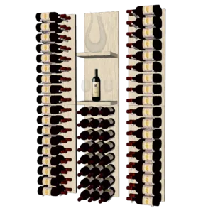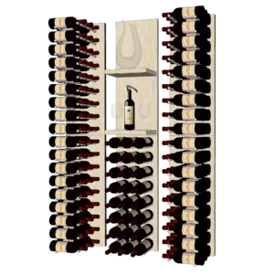 This complete wine wall display includes 6 separate VINdustry Peg and Panel Kits that can be assembled/installed to create the featured design. Customize THE SHOW VINdustry Wine Wall by mixing and matching the following options: Panel Finish – Choose from the following finish options for your decorative, finished face plates: – Black Glossy Acrylic (includes satin black vinyl wrapped floating shelves) – Dark Walnut Vinyl Wrap* – White Oak Vinyl Wrap* – Concrete Vinyl Wrap* *These decorative finishes are achieved with a Bodaq vinyl material that mimics the look of wood or concrete. Please note that the side edge of all panels has a black finish. Peg Finish – Choose from a high-end natural polished aluminum, matte black or gold finish Peg Depth – Choose from single, double or triple deep label view pegs based on your aesthetic and capacity preferences. Accent Lighting** – Include standoff panels with LED perimeter lighting and undershelf lighting to really bring your wine wall to life! Everything you’ll need to add this effect is included with the “Accent Lighting” add-on: – Plywood standoffs panels with aluminum channel and diffusers run around the side edge – these are 1″ smaller in dimension than the panel kits and mount to the wall first with the panel kits then installed on top – Medium density, 3000K LED lighting strips to run inside the standoff panel channels – Medium density, 3000K LED lighting strips to run inside the pre-installed channel diffuser in the underside of each floating shelf – Dimmable drivers to power the LED lights **Note that this add-on requires a 2-wire electrical connection. Feel free to contact us or put your electrician in touch with any questions. Want to see a sample? Please contact us if you’d like to order sample swatches of panel and/or peg finishes. |